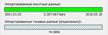 Верхний индикатор (зеленый на скриншоте) показывает качество импортированных минутных данных.