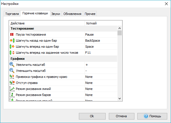 Вы также можете менять значения горячих клавиш во вкладке «Горячие клавиши»
