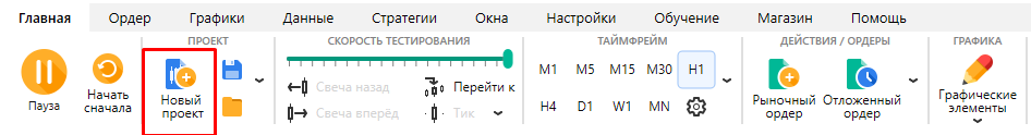 Нажмите кнопку “Новый проект” на вкладке Главная, чтобы начать новый проект.