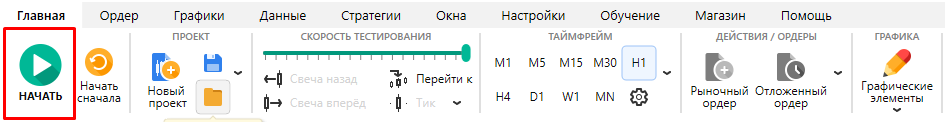 Если тестирование не началось сразу, нажмите кнопку “Начать” на вкладке Главная.