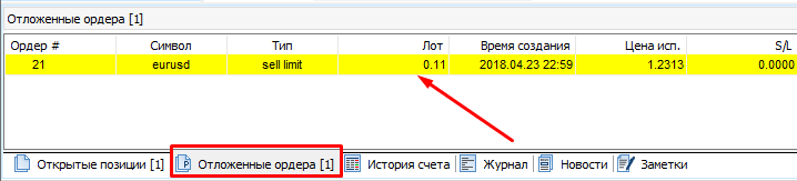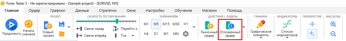 Нажмите кнопку “Отложенный ордер” на вкладке Главная.