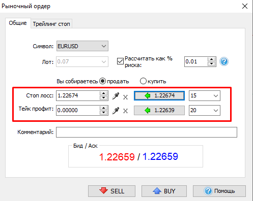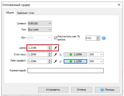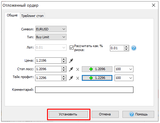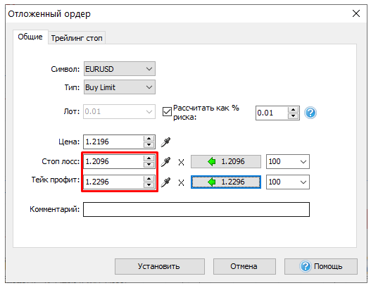 Обратите внимание, что расчет лота на основе риска требует ввода значения Стоп лосса.
