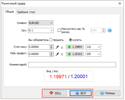 Нажмите кнопку “SELL” (продать) или “BUY” (купить).