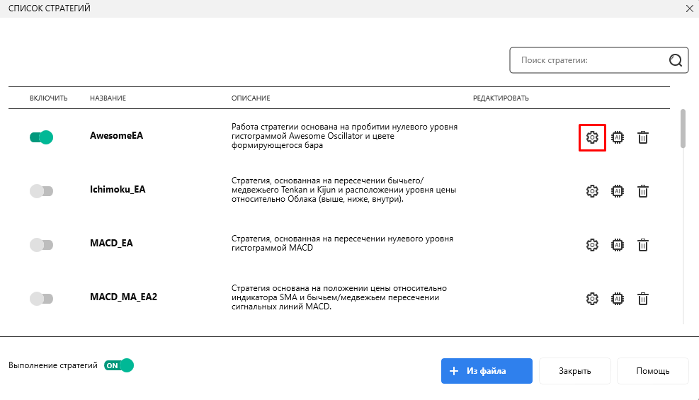 Нажмите кнопку “Список стратегий” на вкладке Стратегии.