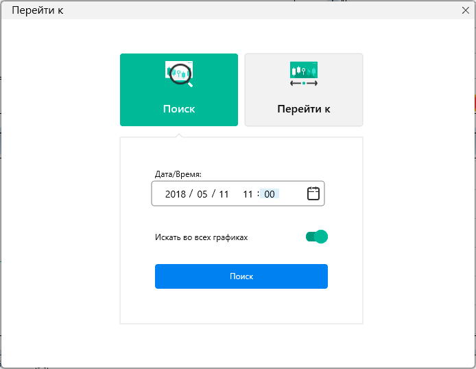 • Укажите, где нужно искать эту дату: только на текущем графике или на всех графиках проекта.
