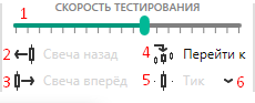 1. Ползунок “Скорость тестирования” дает возможность настроить скорость изменения цены.