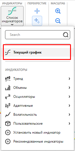 Если вы добавляете свои собственные индикаторы, они попадают в меню «Пользовательские» автоматически.